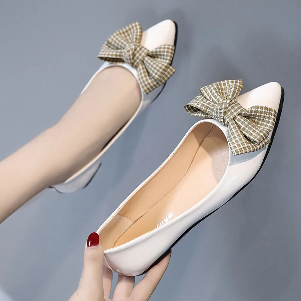 Женские модные повседневные тонкие туфли с острым носком и бантом; Рабочая обувь