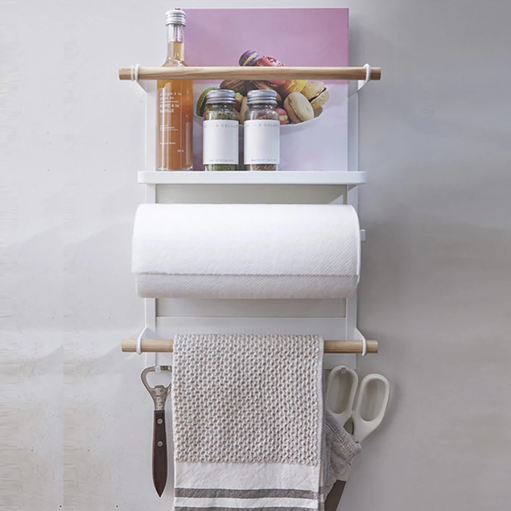 -Идеальный Органайзер с 2 слоями для часто используемых предметов, нижним пространством для рулонных изделий, а также крючками посередине для подвешивания мелких предметов, таких как кухонная утварь, ключи и т. д.