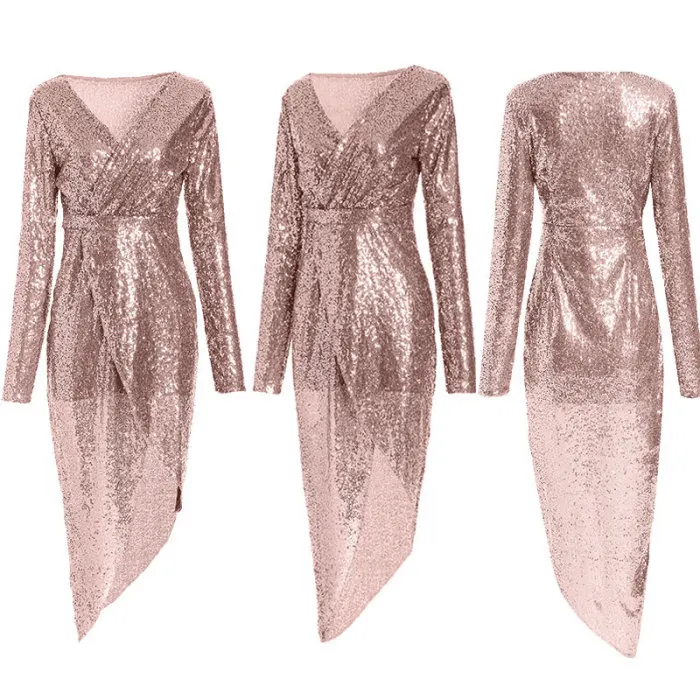 Тип одежды: женское банкетное платье с глубоким v-образным вырезом и длинными рукавами, облегающее блестящее платье с высокой талией