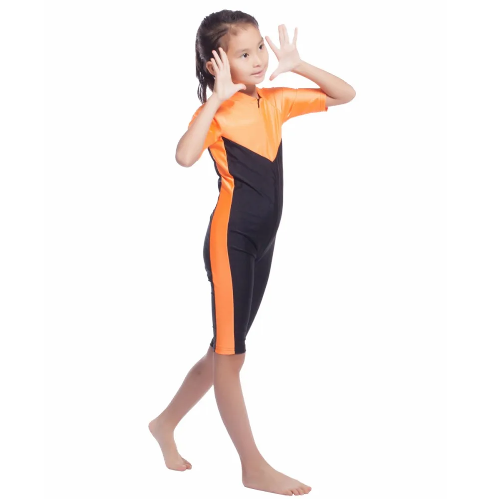 Детский слитный скромный мусульманский купальный костюм Буркини с рукавом до локтя для девочек