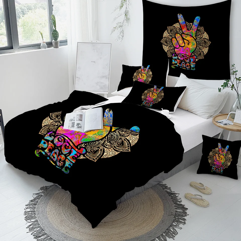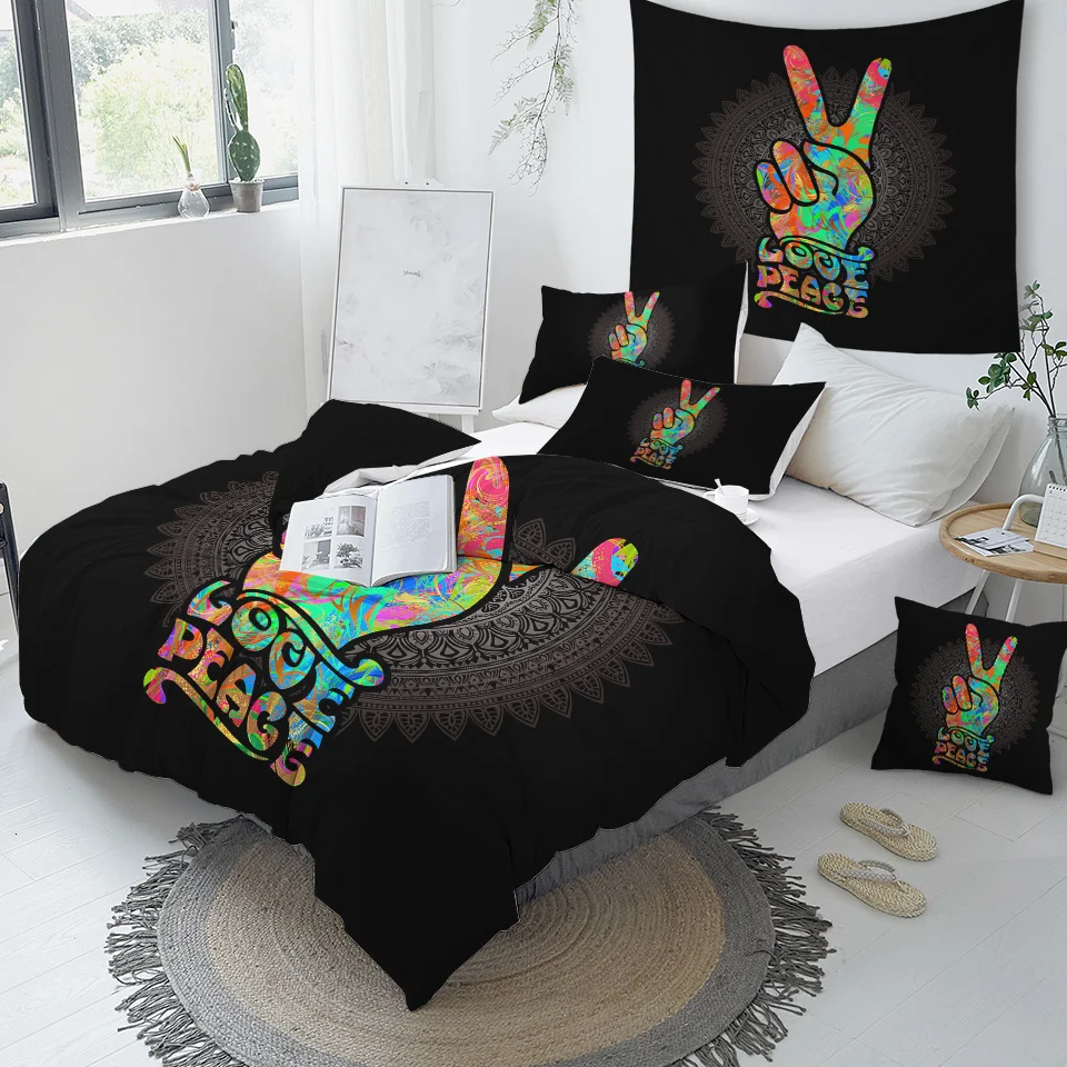Название товара:Комплект постельного бельяУпаковочный лист:1 * пододеяльник + 2 * наволочкиТкань:ПолиэстерСезон:Весна, лето, осень, зимаОсобенности:Идеальный комплект постельного белья для кормления вашего внутреннего хиппи.Рекомендации по уходу за постельным бельем:1) Если для сочетания Вам дополнительно требуется простынь, пожалуйста, свяжитесь с нами.
