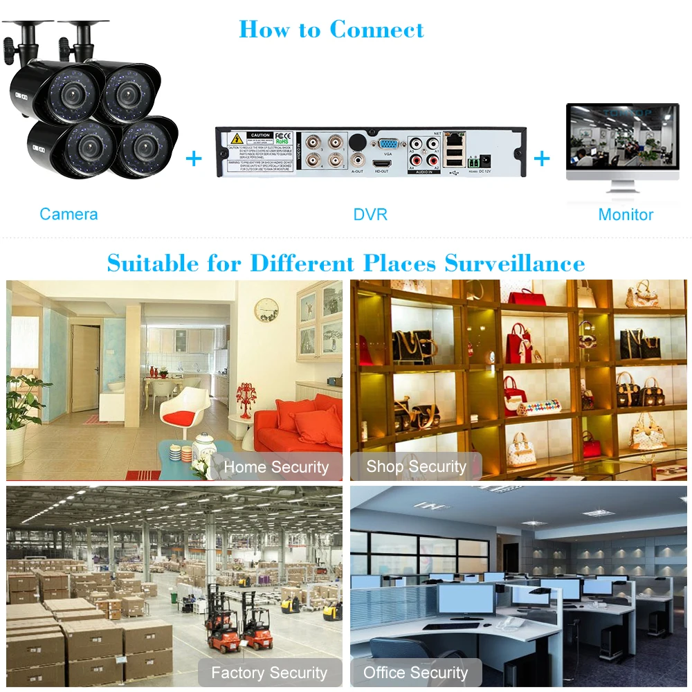 * Состоит из 4 водонепроницаемых камер 720P + 4*60 футов кабеля.