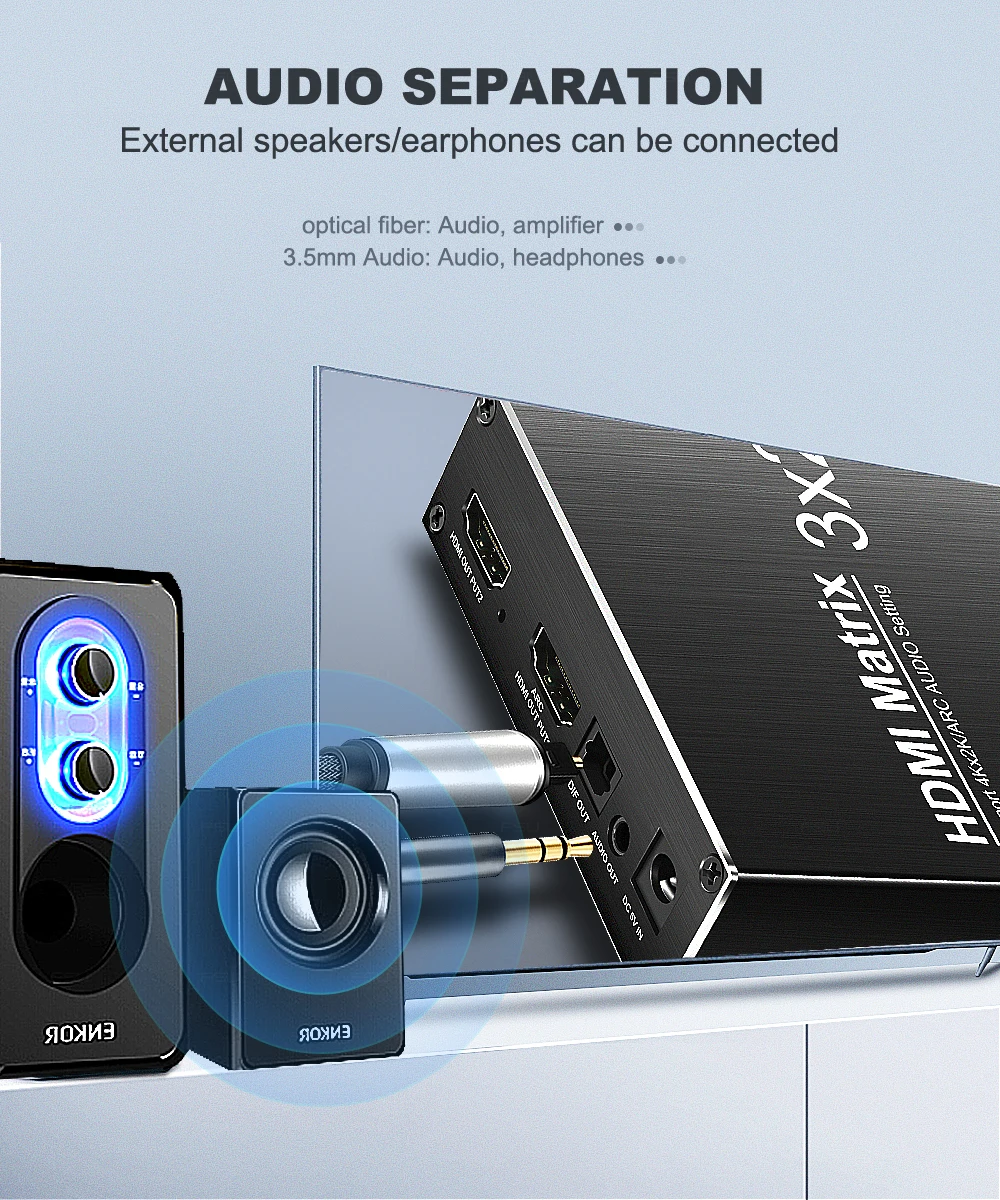 Любой сигнал HDMI может быть самостоятельно выводится через волокно или стерео наушники.