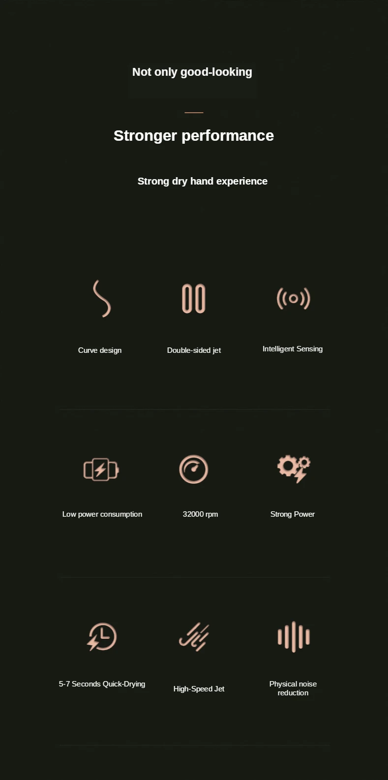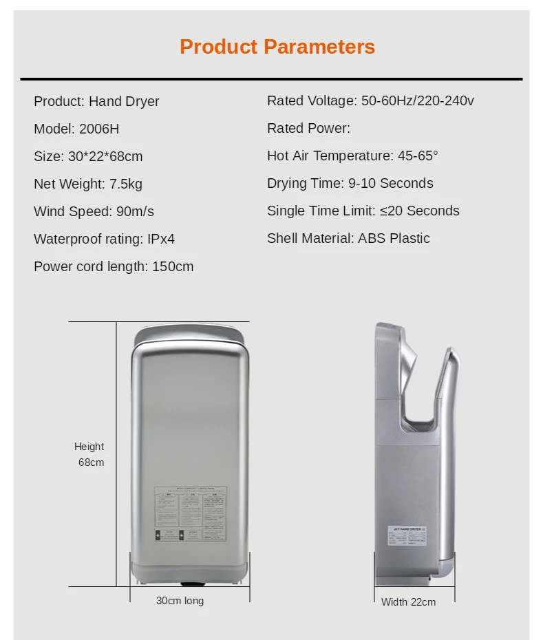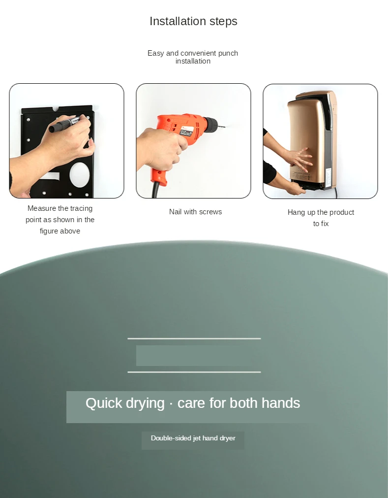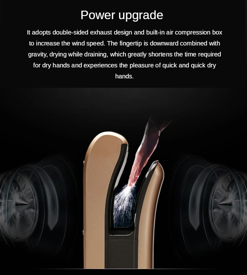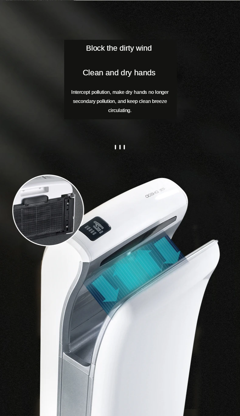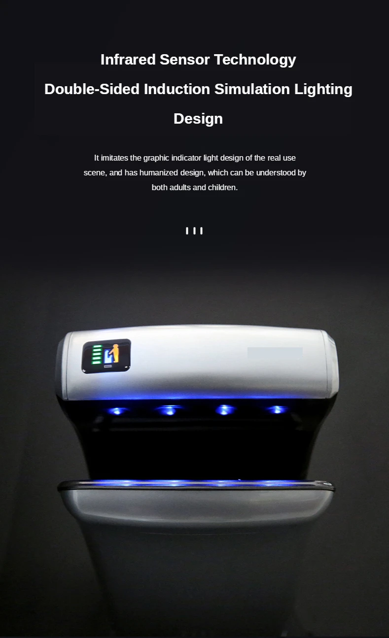 Коммерческая двухсторонняя сушилка для рук, ванная комната, бесщеточный мотор, быстрая сушилка для рук, регулируемая скорость горячего и холодного ветра