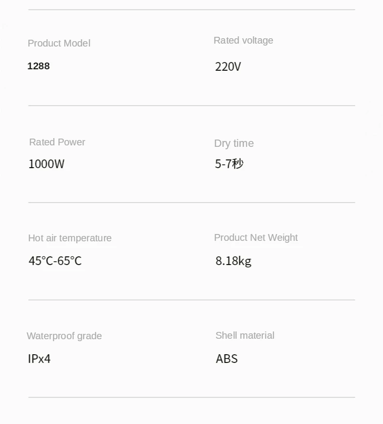 Температура горячего воздуха: 45 градусов Цельсия-65 градусов Цельсия