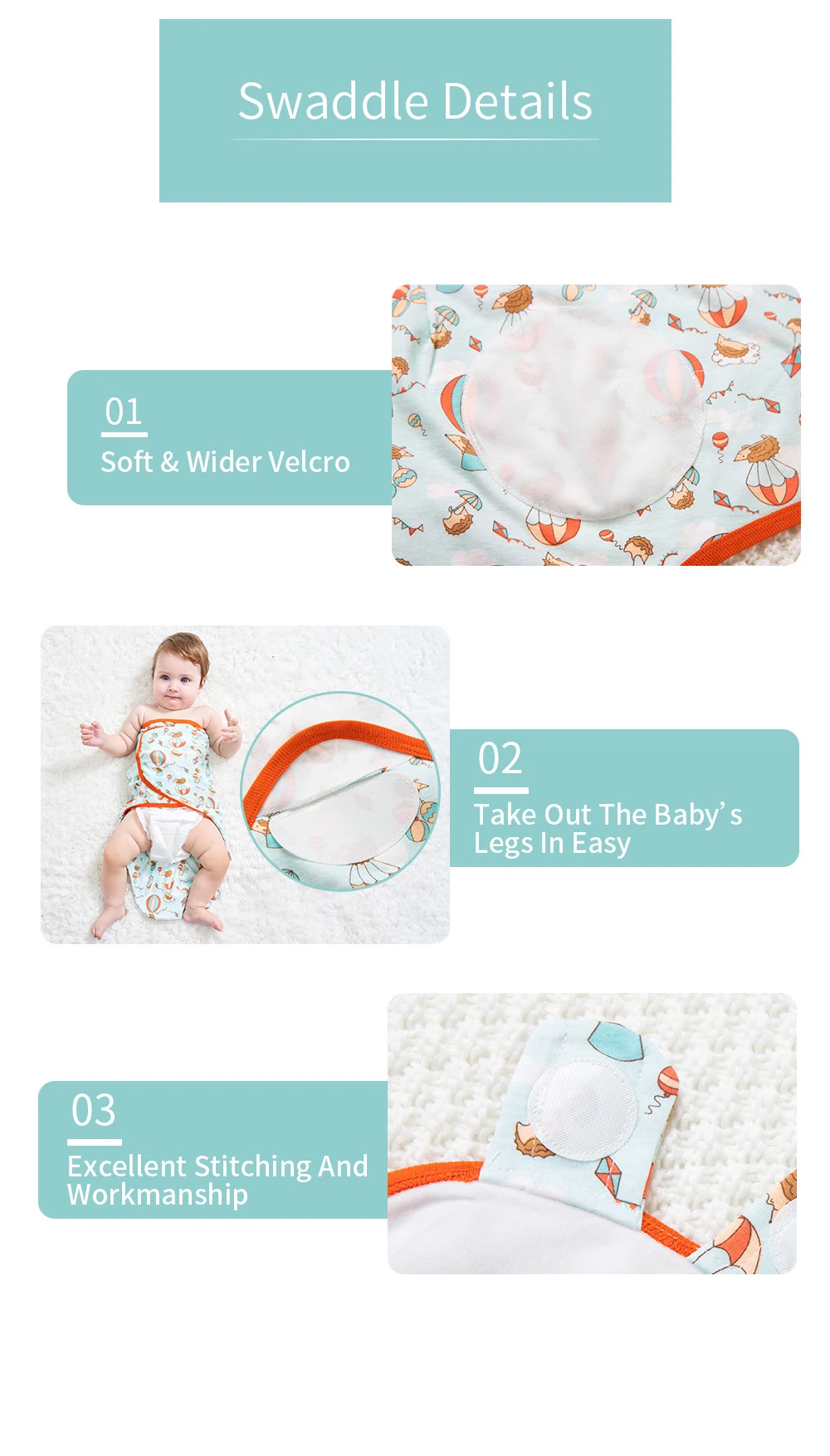 1. 2 шт. в одной коробке для смены ребенка. 2. Тонкий и мягкий хлопок для комфортного прикосновения ребенка. 3. Анти-стартовый рефлекторный дизайн для лучшего сна ребенка