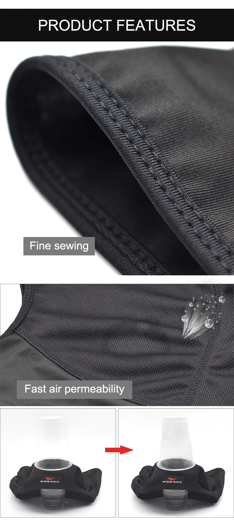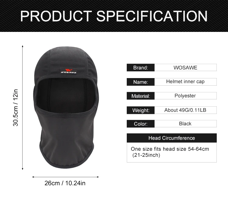 Внутренняя Крышка ШЛЕМА Wosawe помогает поглощать и удерживать тепло в теле, одновременно отводит влажность и уменьшает набухание пота.