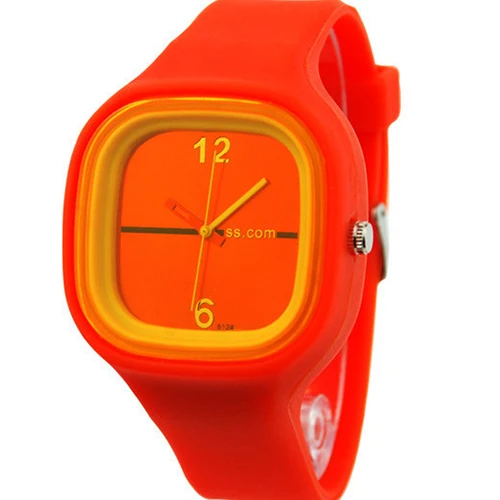 Часы наручные кварцевые с квадратным циферблатом и силиконовым ремешком