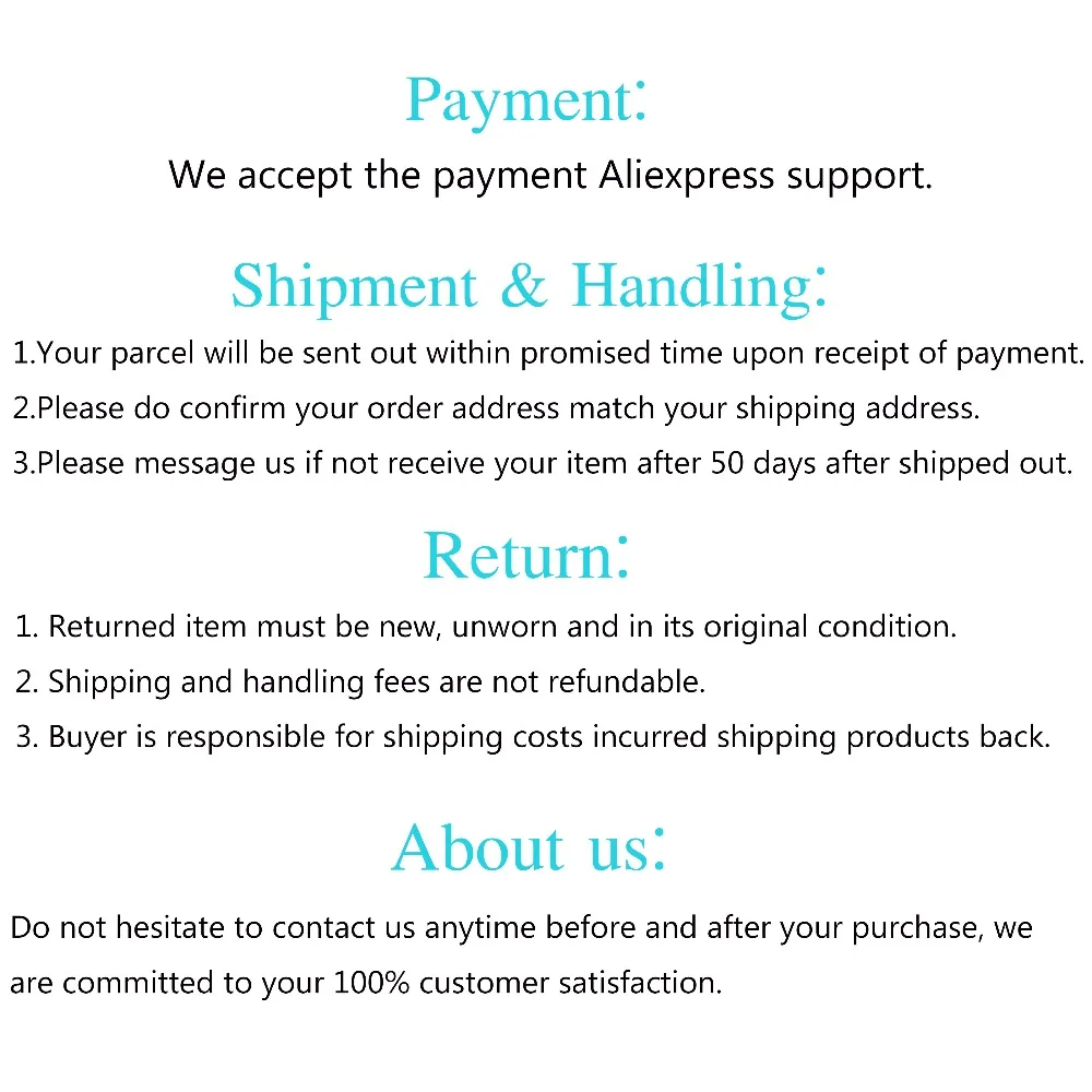 3. Если у вас есть какие-либо проблемы, пожалуйста, не стесняйтесь связаться с нами, прежде чем оставить отзывы,Мы считаем, что любая проблема может быть решена, зависит от хорошей коммуникации. Спасибо!