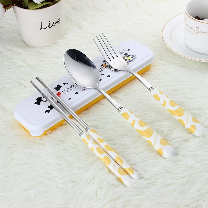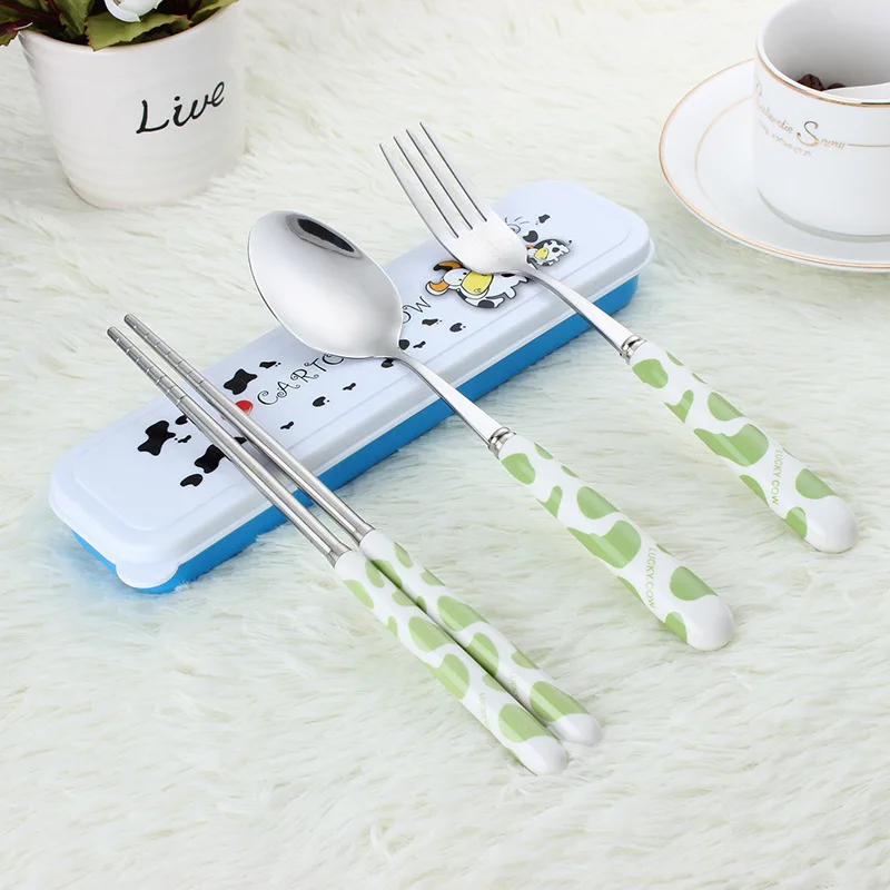 Детский набор посуды для детей из нержавеющей стали, Корейская посуда, столовые приборы, вилка, палочки для еды, ложка, набор Bento, Ланч-бокс, аксессуары