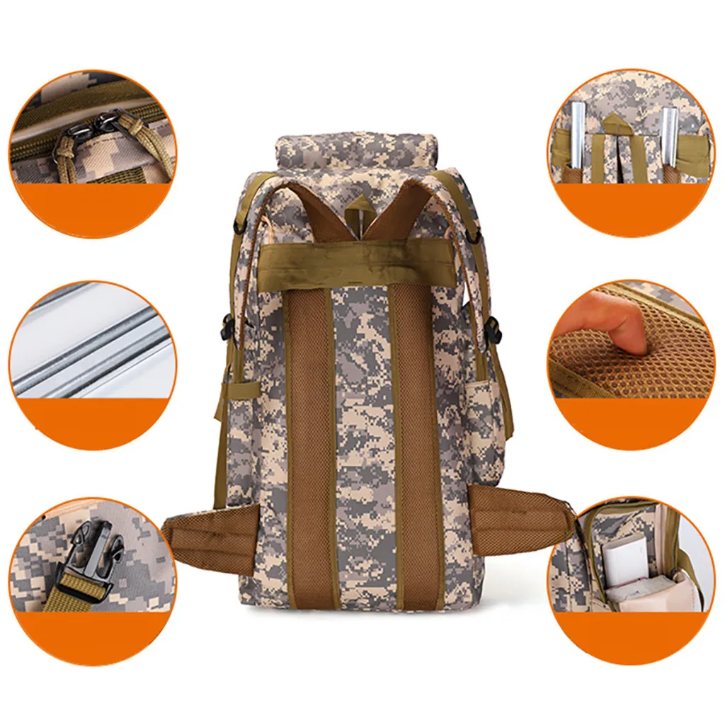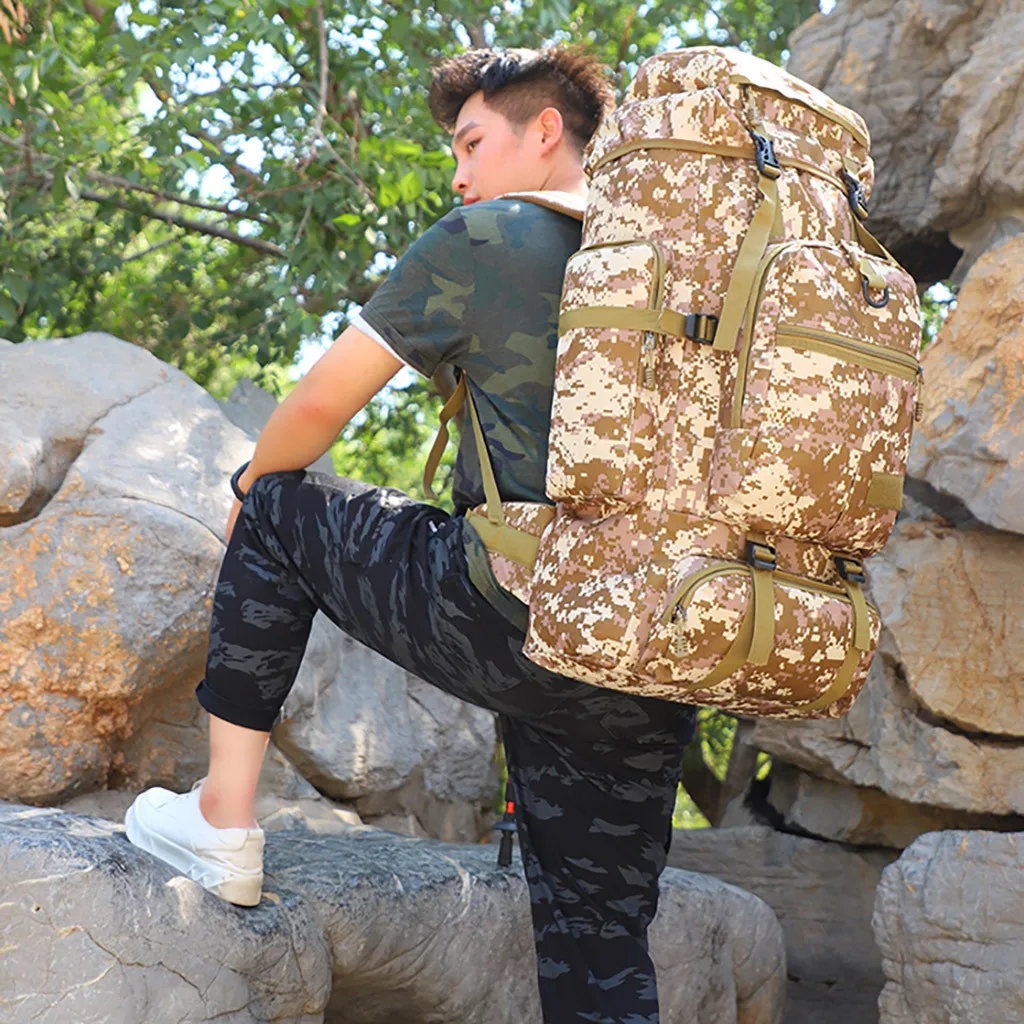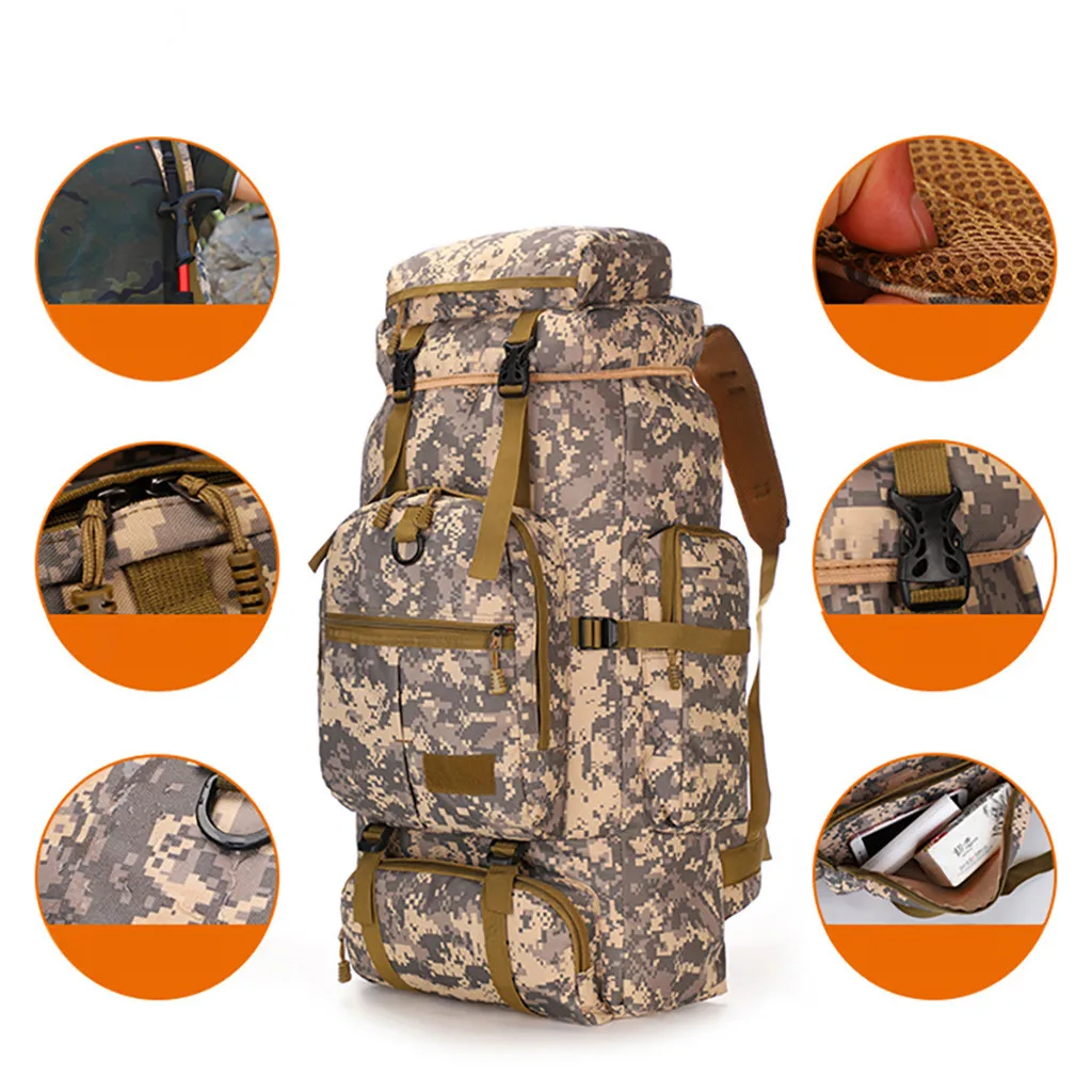 ОписаниеБольшой Ёмкость 75L рюкзак камуфляж Открытый мешок путешествия альпинизм мешок