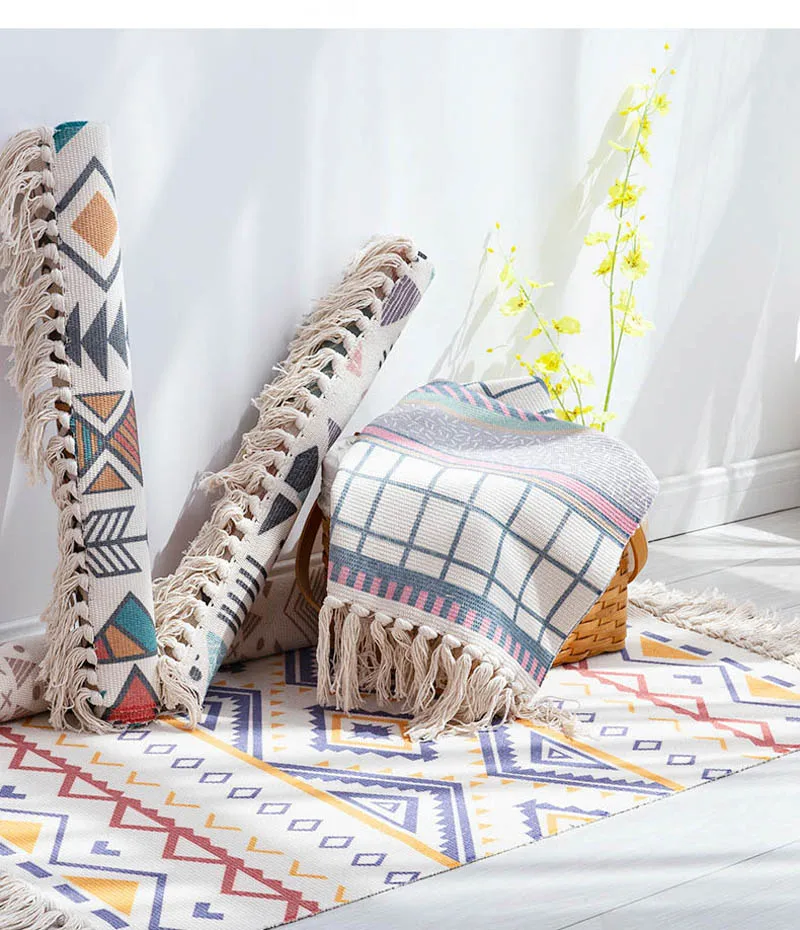 Ручной Тканый ковер для спальни, гостиной, богемный ковер, декоративное хлопковое белье, геометрический Коврик для пола с кисточками, домашний декор