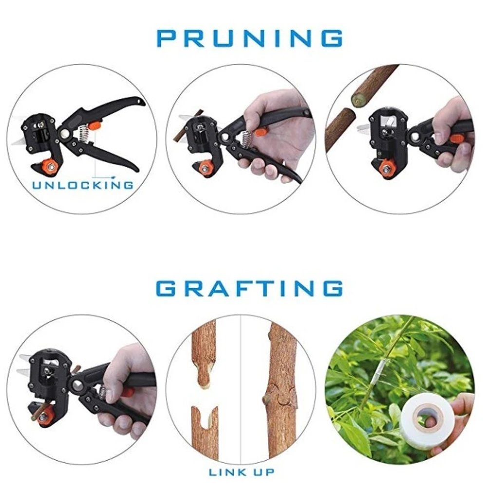 Это своего рода качественный садовый набор инструментов для прививки, изготовленный из высококачественных материалов, высокопрочных АБС-ручек, высокоэластичных пружин и Высокоуглеродистых стальных затачивающих лезвий, для повышенной прочности и долговечности, и может обеспечить долгое время обслуживания. Обычно подходит для фруктовых деревьев, овощей, саженец, прививки цветов и т. Д. Вы можете попробовать.