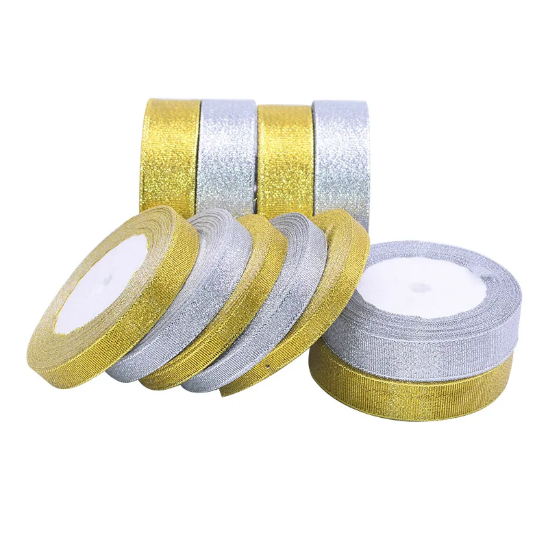 25 ярдов/рулон рождественские 1/1,5/2/2,5 см цвета: золотистый, серебристый кружевной лентой металлик и блестящим кружевным верхом; Свадебная вечеринка торт упаковочные материалы для подарков