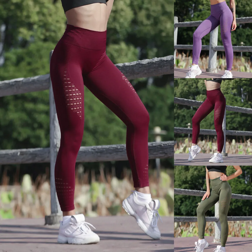 Для женщин высокая Талия Йога Твердые выдалбливают леггинсы бег спортивные брюки