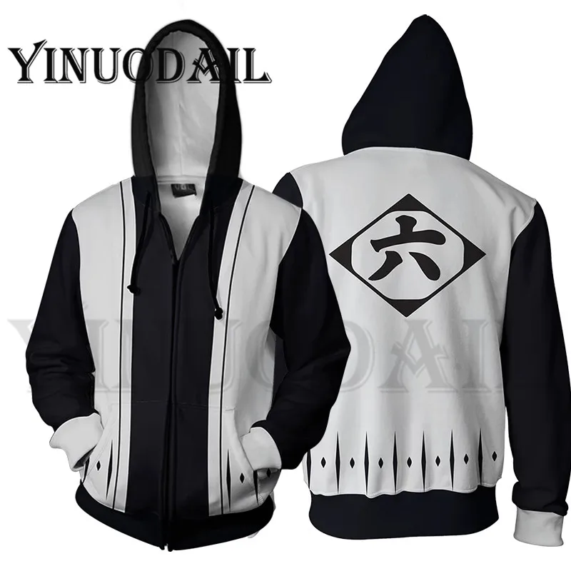 Мужские и женские мужские толстовки на молнии Аниме Bleach Толстовка Кучики Бьякуя отряд 6 Толстовка Captain Косплей костюмы Harajuku уличная одежда
