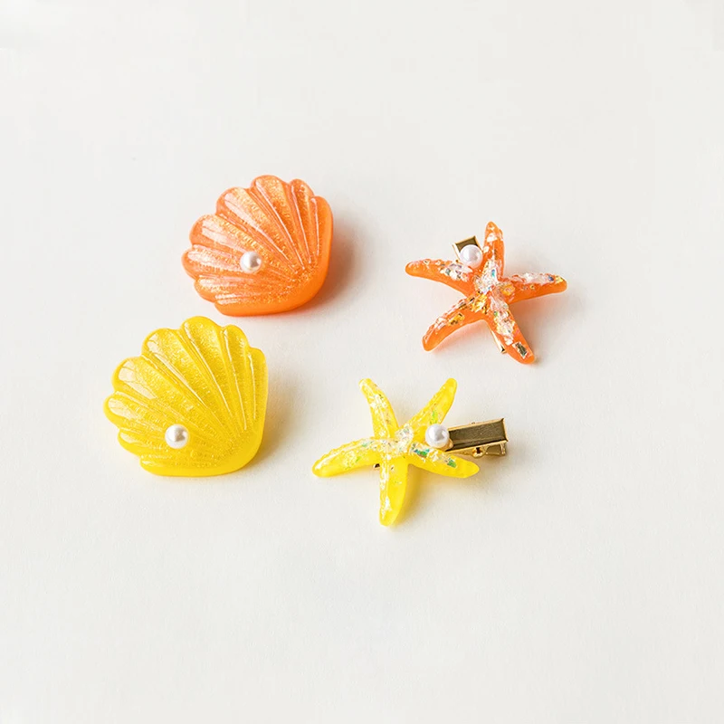 2 шт./компл. заколка для волос гребешок с жемчугом в виде морской звезды нарисованной длинноволосой девочкойЗажим на лето