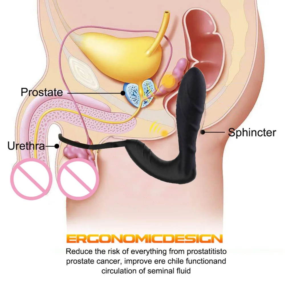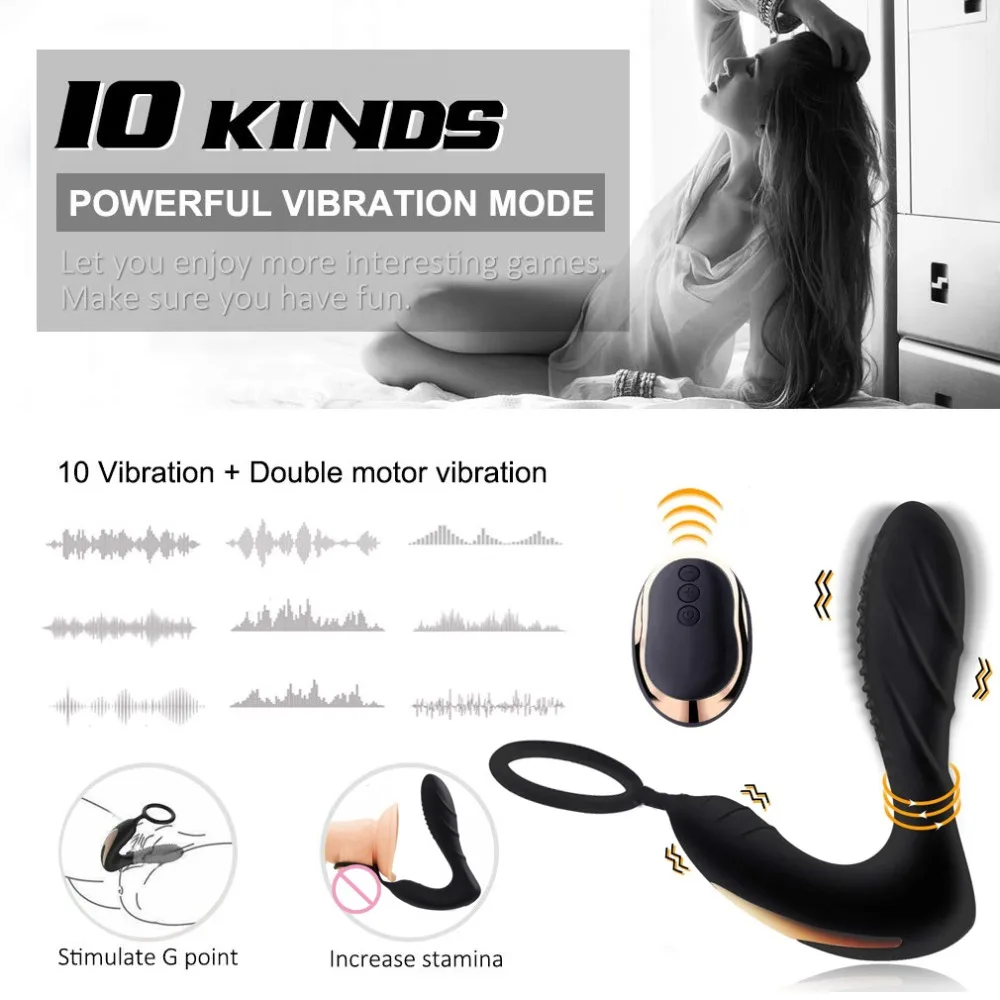 3-в-1 мужской массажер простаты: Анальный Секс игрушечные медведи ко всем функциям массажер простаты, вибратор пенис кольцо. Двойной мотор дает вам мощный и стимулирующий сексуальный опыт. Расстояние дистанционного управления составляет 15-25 м, что увеличивает удовольствие для вашей сексуальной жизни. Менее 50 дБ, когда секс-игрушка с P-Spot работает.