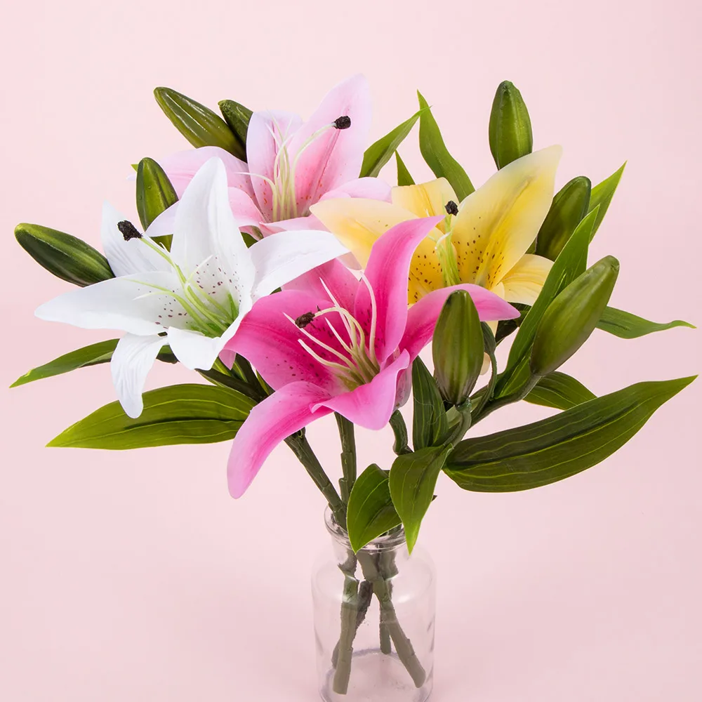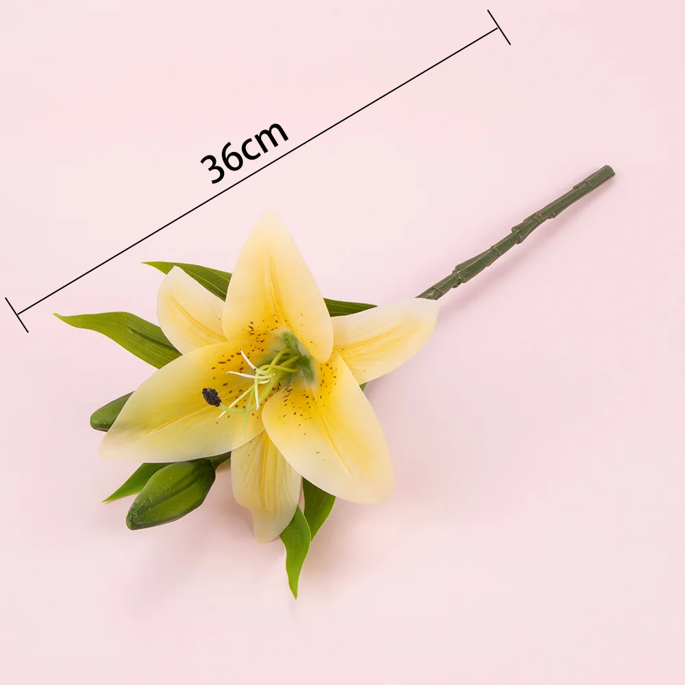 Тип: искусственный цветок лилии Размеры: длина 36 см, диаметр цветка 15 см Материал: ПВХ Цвет: светло-розовый, розовый, белый, желтый Количество: 1 шт. цветок лилии