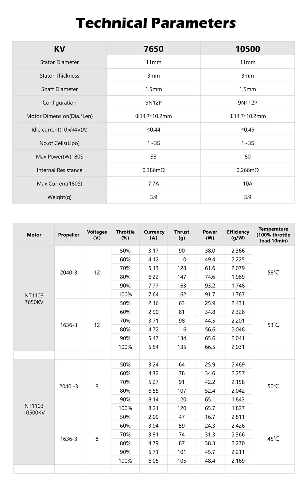 FLYWOO NIN TINY NT1103 1103 7650KV 10500KV 1-3 S бесщеточный двигатель для радиоуправляемого дрона FPV Racing