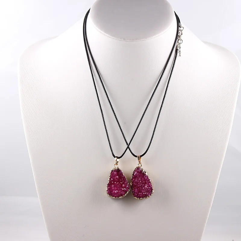 Женское Ожерелье с натуральным розовым красным неровным минеральным кристаллом Druzy, чакра с каплями воды, массивное ожерелье из необработанного камня, ювелирное изделие, 1 шт., около 32x22мм