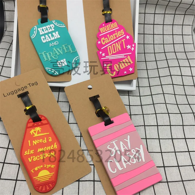 Состояние: 100% новый и высокое качество Материал: ПВХ Количество: 1 шт. Размер: 9,5 см * 6,5 см Аксессуары для путешествий: бирки для багажа Вес изделия: 25 г Материал: силикон Цвет: синий, красный, розовый, оранжевый Узор: английские буквы