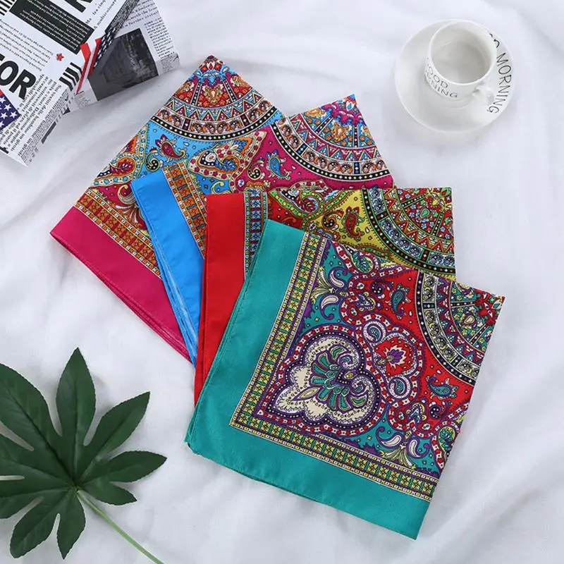 Этнический стиль для женщин и мужчин панк бандана яркий цветной Пейсли Цветочный Принт квадратный шарф Велоспорт танцы головной убор Steetwear