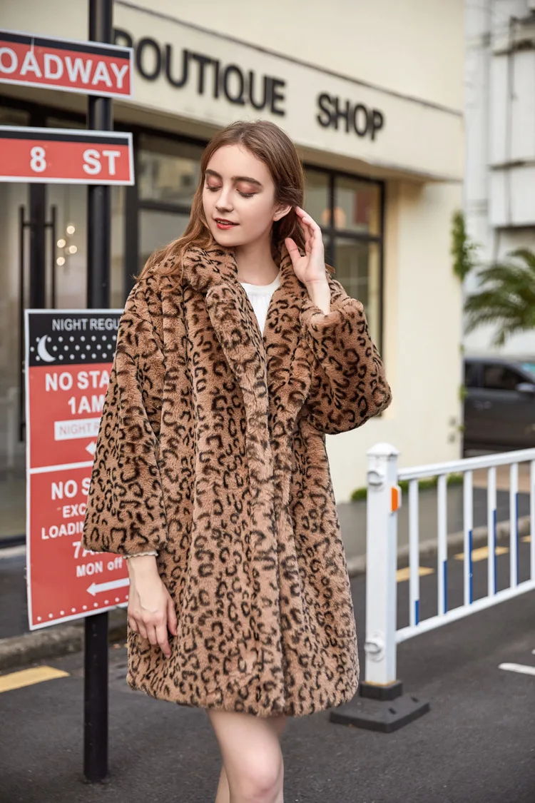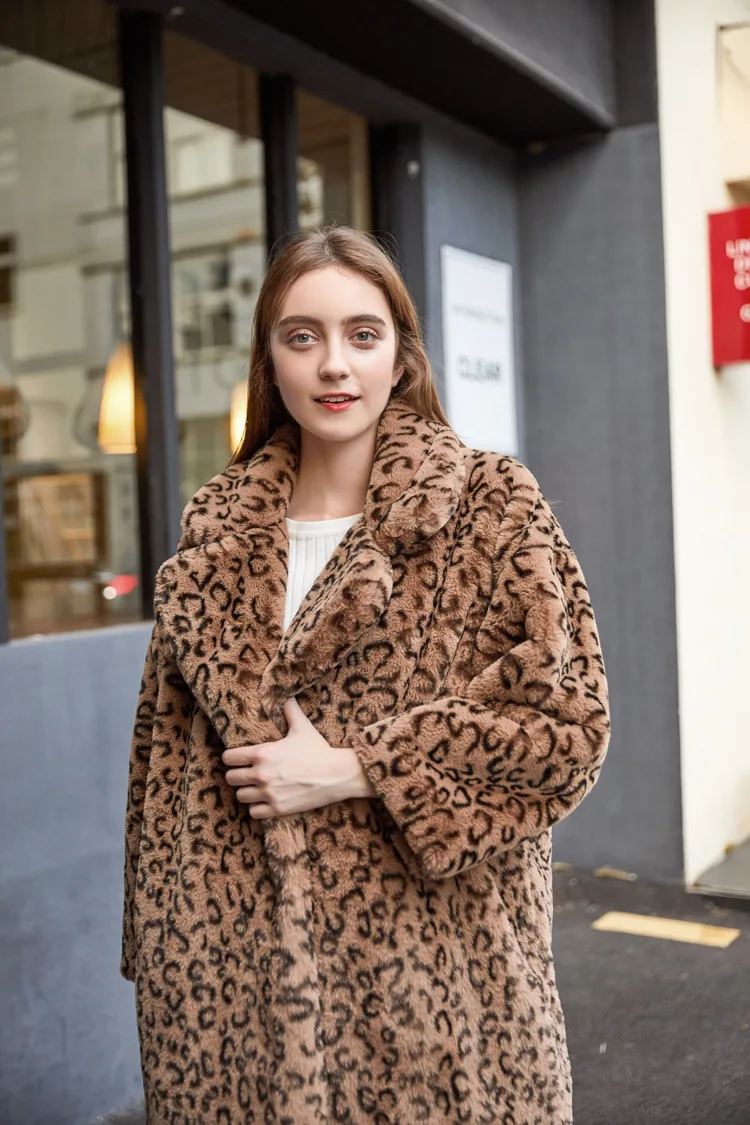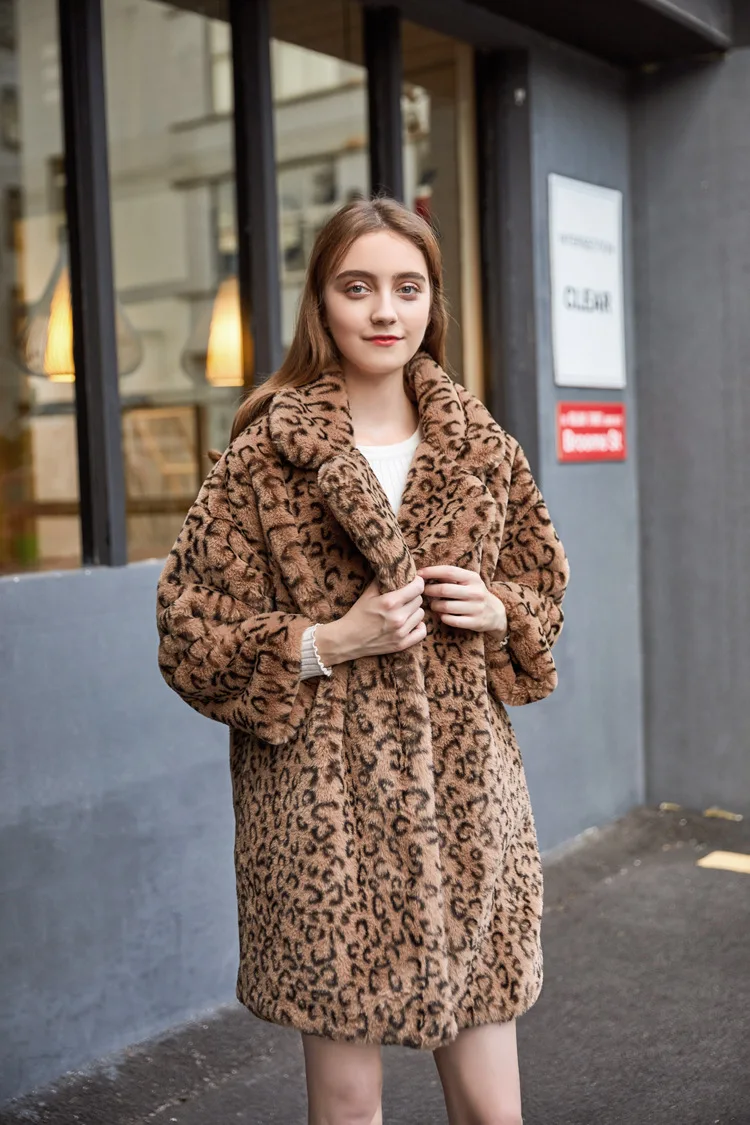 Женское пальто с леопардовым принтом ZADORIN, свободное повседневное длинное пальто из искусственного меха с отложным воротником, теплая зимняя меховая куртка, винтажная парка, уличная одежда
