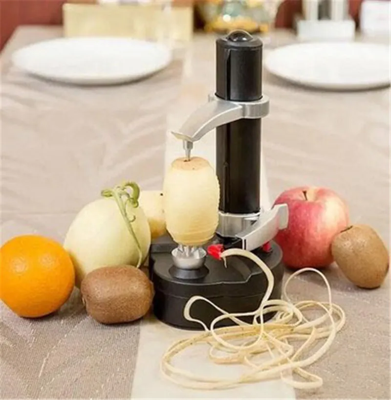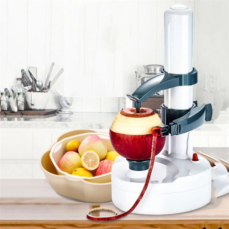 Электрическая Овощечистка для картофеля, овощей и фруктов Это потрясающая пилинг-машина, которая быстро и легко очищает картофель, овощи и фрукты! Незаменимый кухонный инструмент! Основные характеристики: ● Два дополнительных лезвия вставляются в Встроенный отсек ● Просто снимите кожу и не тратьте питательные вещества на фрукты или овощи ● Прочный АБС-пластик и Нескользящая основа ● Ультра-безопасный дизайн: не нужно трогать или держать овощи или фрукты при отслаивании ● Легко протирать влажной тканью ● Может работать с адаптером 6 в (не входит в комплект) или 4 батареями типа АА (не входят в комплект)