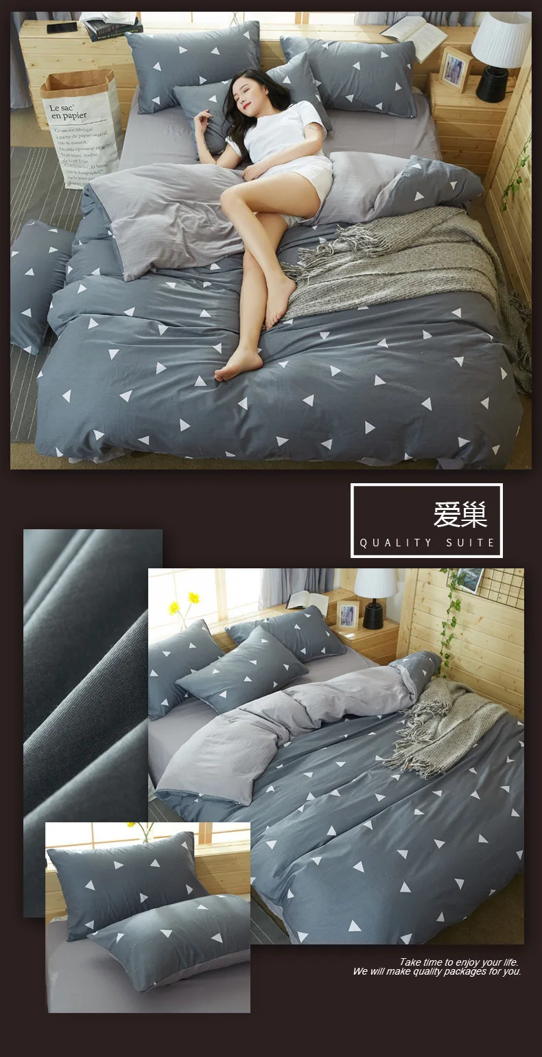 Полный 1,5 м 4 шт. набор включает: 1 шт. пододеяльник 150x200 см, 1 шт. простыня 200x230 см, 2 шт. наволочки 48x74 см