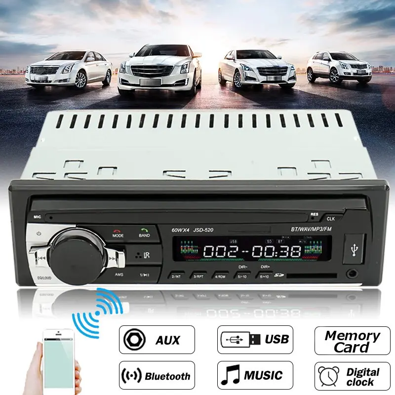 24v bluetooth аудио автомобиля 1 DIN в тире Aux вход SD USB MP3 FM радио плеер JSD-520
