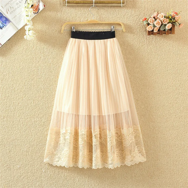 2019 винтажные кружевные юбки Женская эластичная юбка из тюля с высокой талией длинная Плиссированная Юбка-пачка Женская Jupe Longue