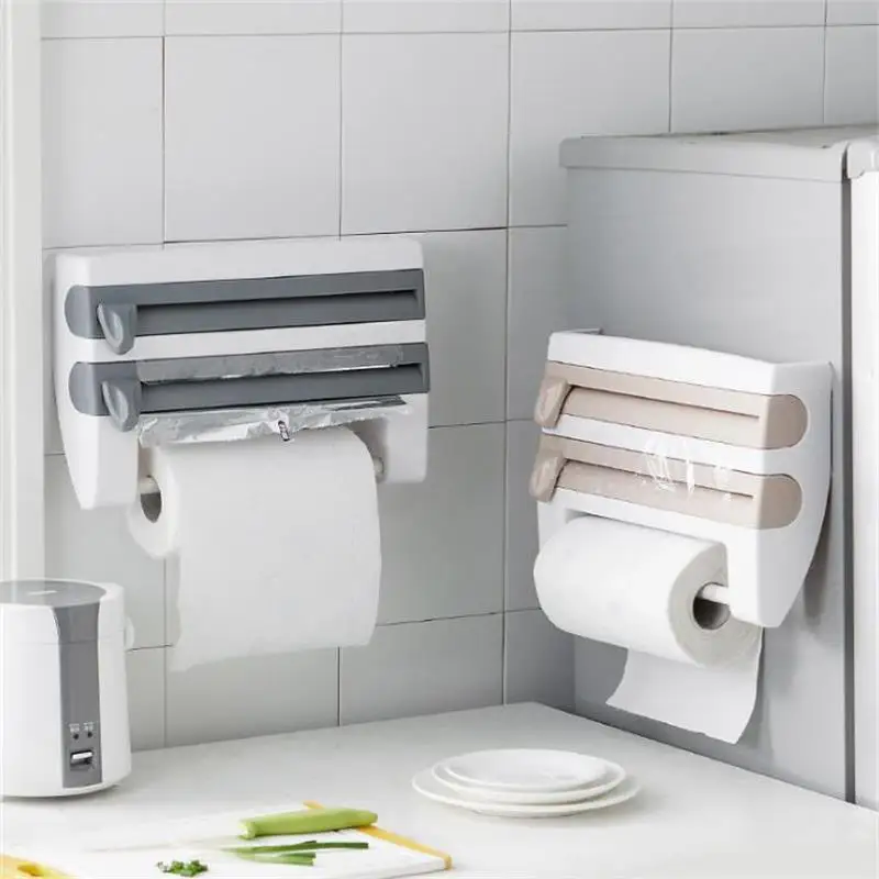 Многофункциональный кухонный Органайзер, держатель для резки пленки, подставка для хранения бутылок с соусом, Оловянная фольга, настенный держатель для бумажных полотенец