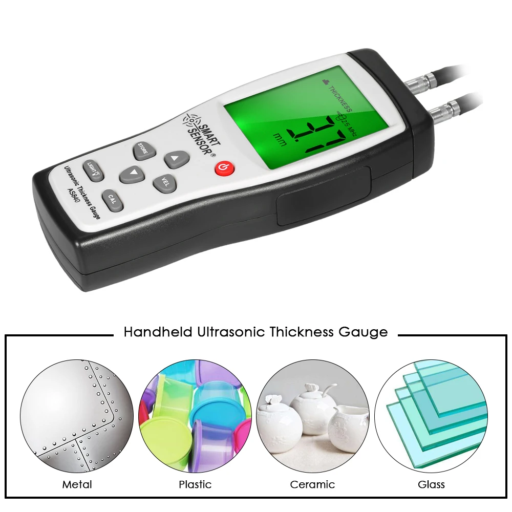 Этот профессиональный ультразвуковой толщиномер является интеллектуальным ручным измерителем толщины, который принимает ультразвуковой измерительный принцип и контролируется микропроцессором, обеспечивает быстрое и точное измерение толщины для большинства промышленных материалов. Этот ультразвуковой