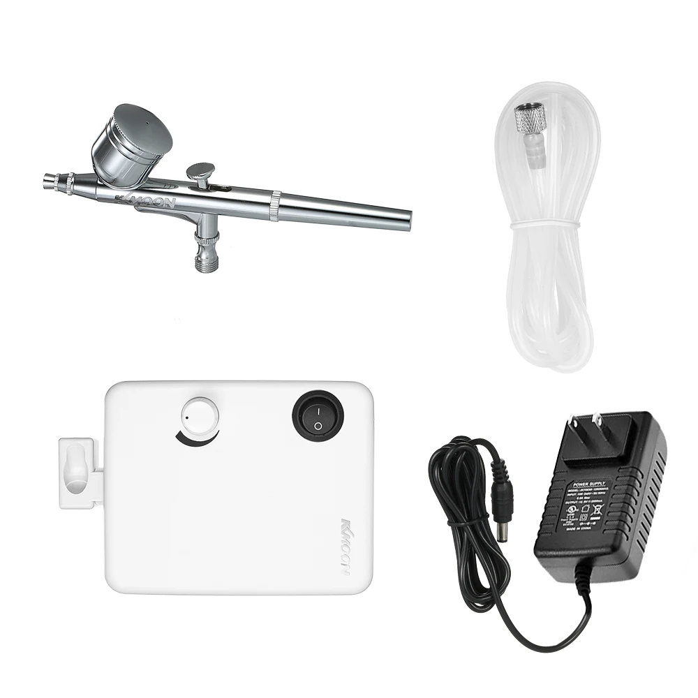 Включает портативный воздушный компрессор, воздушный шланг, двойного действия гравитационный питательный Аэрограф, мини воздушный фильтр и держатель.