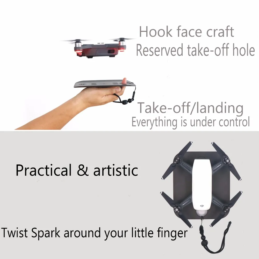 Размеры мини Легко переносить, легко в рюкзак Очень подходит для рассвета взлета и посадки Пластик литье Не сгибается деформация Легко выдерживают вес Xiao Вес: 86 г (150 г с розничной коробкой) Размеры: 18*15*2,5 см 1 х DJI Spark тяжелых круглых посадочных площадок (Не включает DJI SPARK и другие аксессуары)
