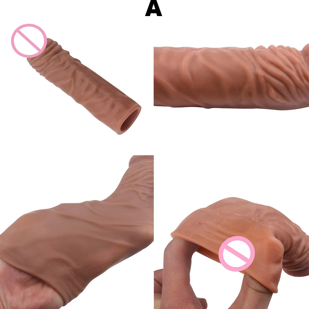 Изделие с твердым имитационным блеском Функция 3 в 1: resuable презерватив; Кольцо для пениса; Удлинитель для пениса Плотно прилегает и обшит для улучшения производительности.