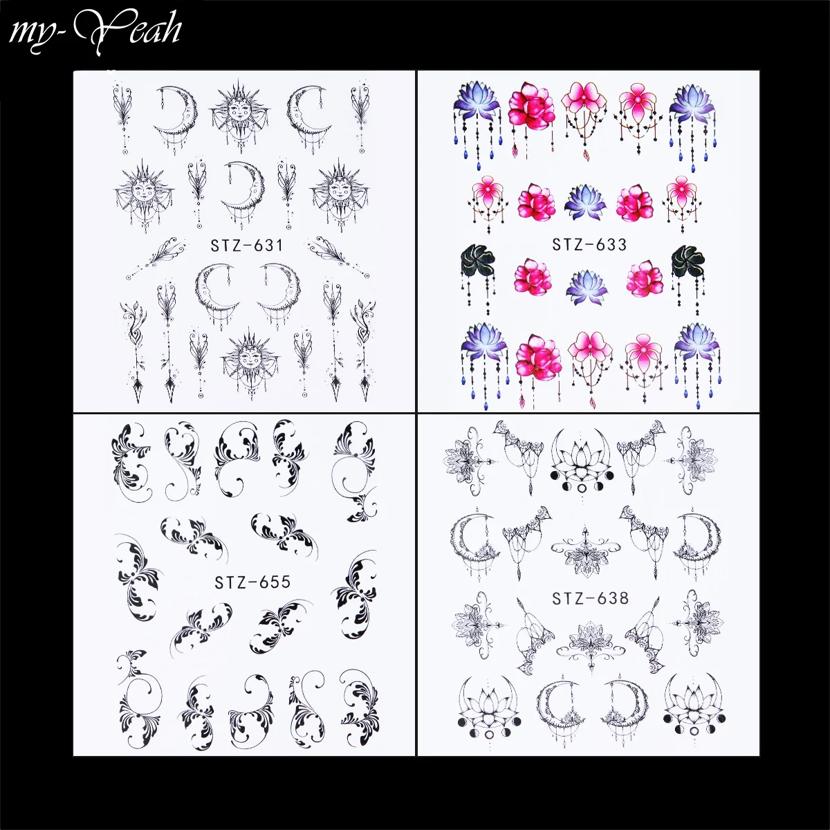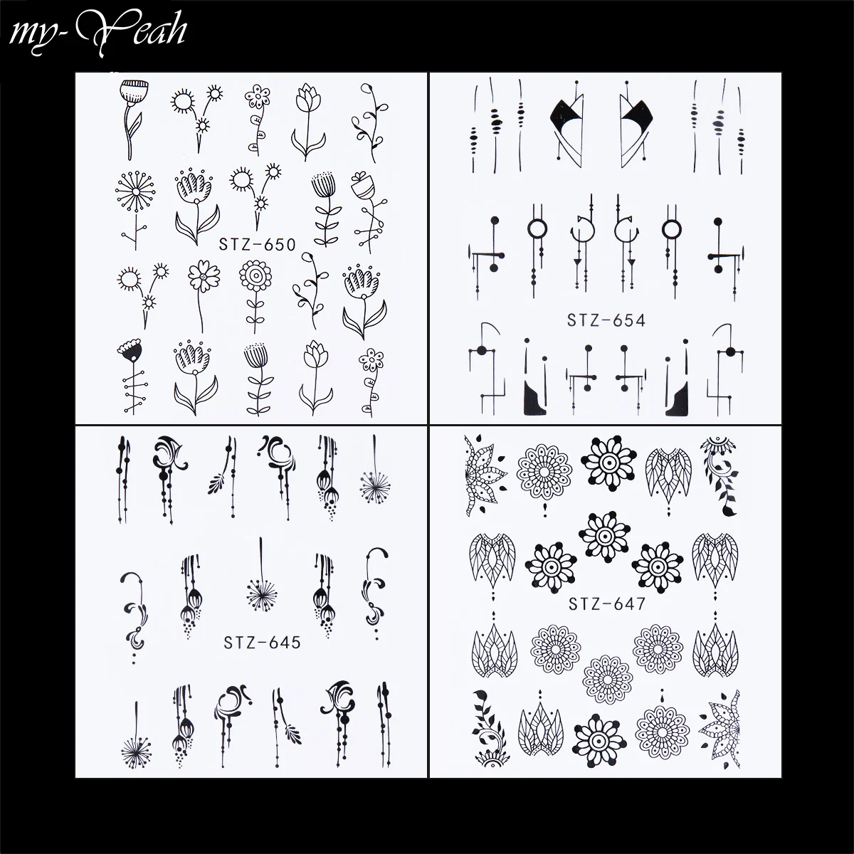 Пакет включает в себя:24 шт наклейки для ногтей