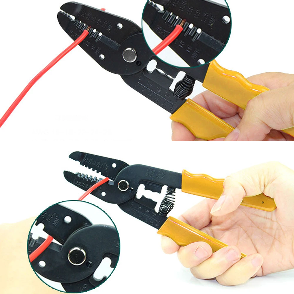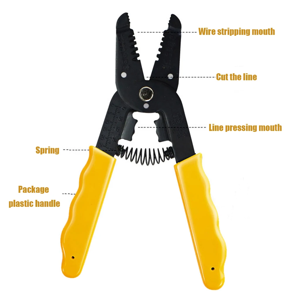 Многофункциональные ручные плоскогубцы 7 в 1 имеют широкий спектр применений. Различные размеры проводов могут быть использованы в соответствии с соответствующим положением отверстия, а также добавлены функции провода-режущего порта и различных типов клемм обжимные порты. Это ручной инструмент для электриков, ремонтных работников и обычных семей.