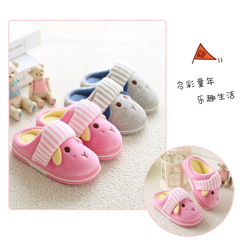 Новые детские хлопковые тапочки для мальчиков и девочек, теплые зимние детские домашние тапочки с милыми цветами, нескользящая детская обувь с мягкой подошвой