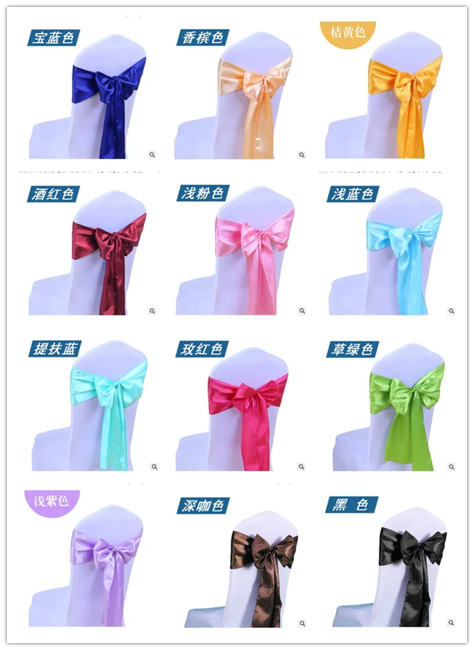 Использование: Свадебные, вечерние и гостиничные чехлы на стулья Материал: атласная ткань Размеры: 17*275 см Цвет: любой цвет, доступный в цветовой таблице Минимальное количество заказа: 25 Размер: подходит для любых стульев. Также в соответствии с требованиями клиентов