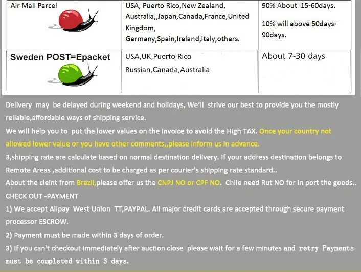 Оплата может быть осуществлена онлайн из системы Aliexpress. Или вы можете отправить платеж непосредственно на банковский счет нашей компании. Удивленная цена будет предоставлена для оптового заказа. Свяжитесь с нами, чтобы узнать о товарах и хорошей стоимости курьерской доставки. Мы гарантируем, что продукт является 100% оригинальным брендом, новый и Отгрузка в хорошем состоянии! С нетерпением ждем вашего заказа и нашего хорошего сотрудничества! Электронная почта (адрес горячей почты): welltechcn на hotmail.com Тел: + 86 15067869100 Wеchat ID: welltechcn Whatsapp: + 8615067869100