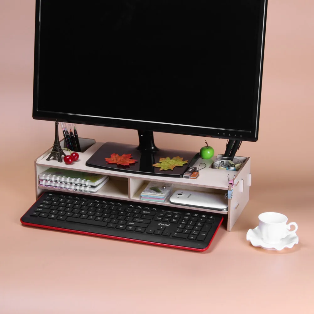 Поднимите монитор до уровня зрения, чтобы вам не пришлось сгибать шею. Помогает предотвратить болезни позвоночника.