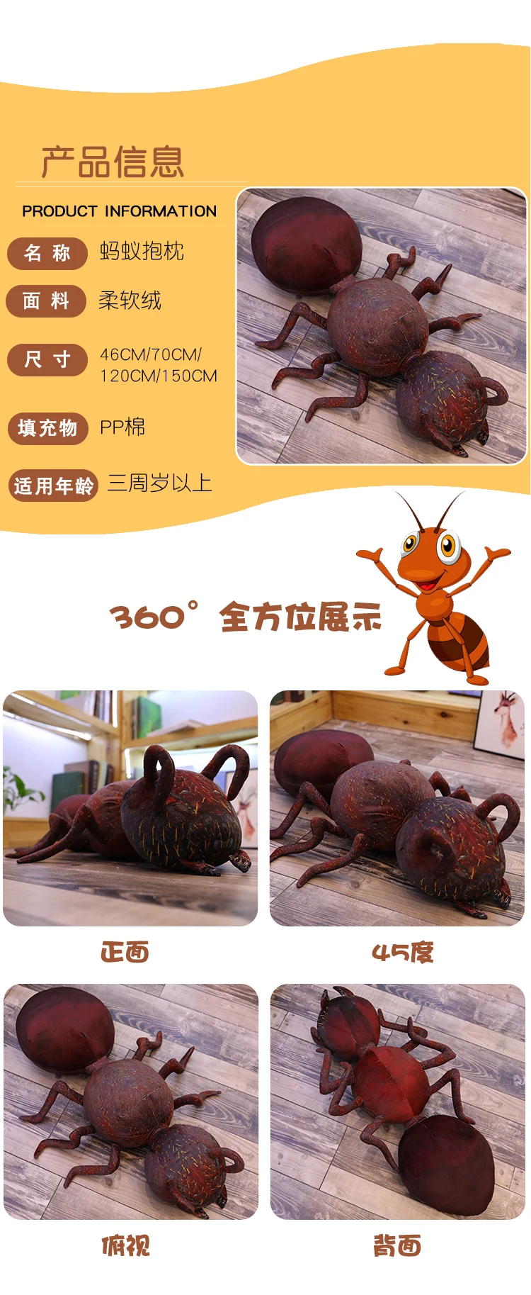 Новый 46/70/120 см мультфильм моделирование муравей плюшевые мягкие игрушки животных мягкие куклы подушка кровать офисный Декор трюк смешная игрушка в подарок для ребенка