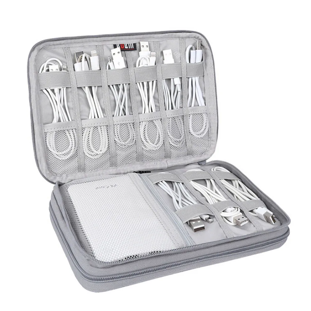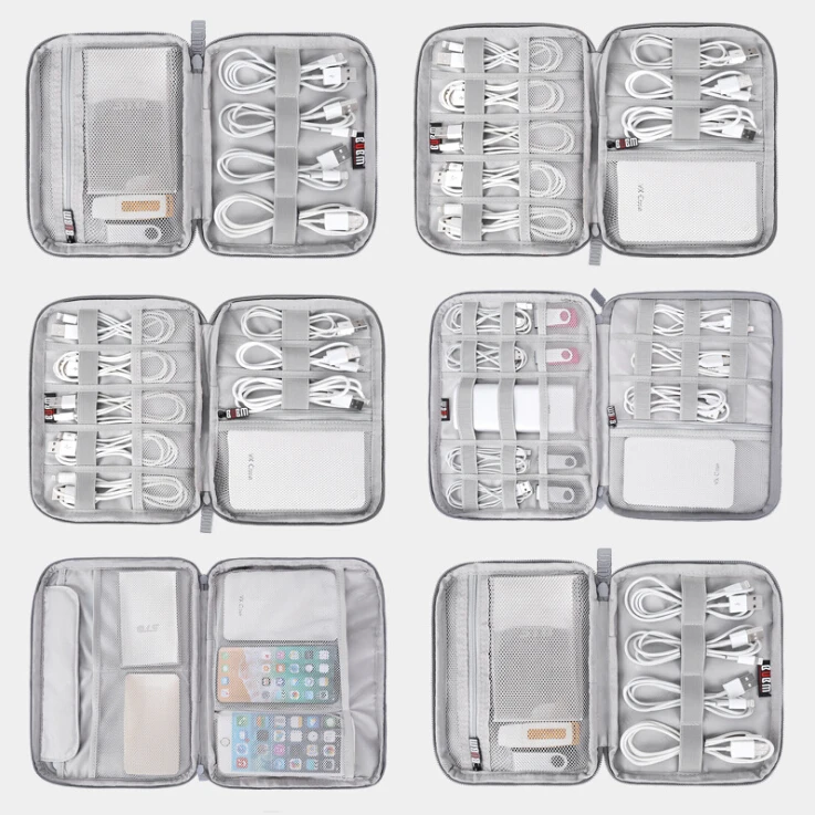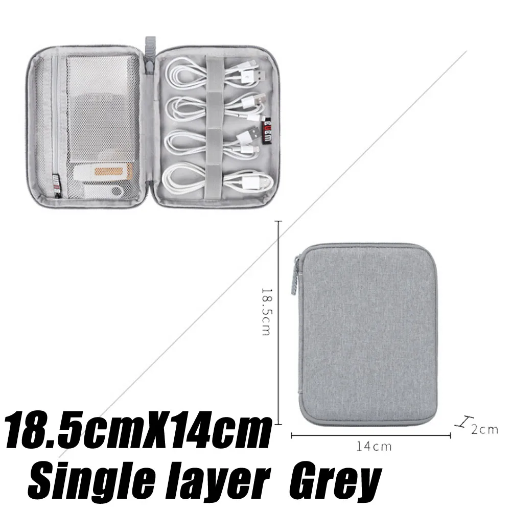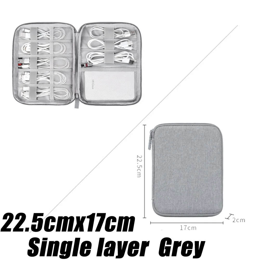 Серая цифровая сумка для хранения USB органайзер для кабеля данных, наушников, Проволочная сумка, ручка, внешний аккумулятор, Дорожный комплект, чехол, аксессуары для электроники