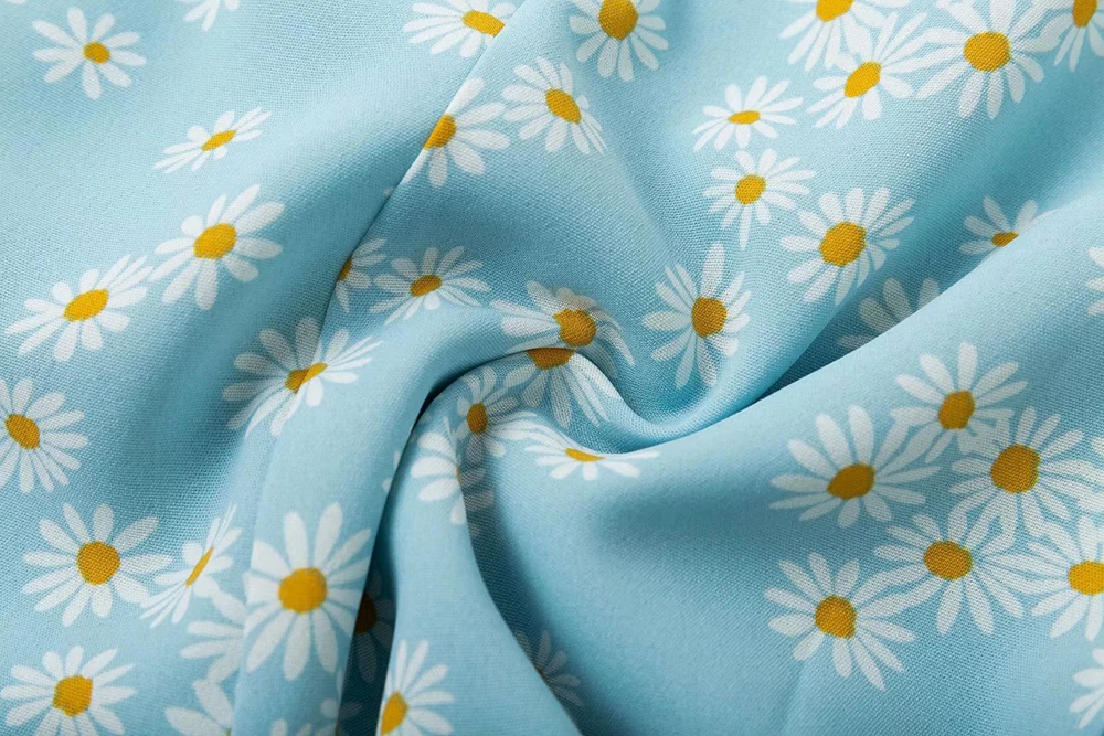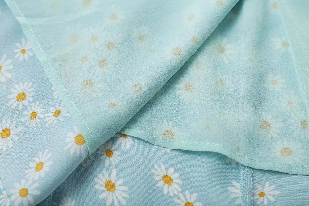 Синее платье с принтом ромашек, женское платье с коротким рукавом и v-образным вырезом, женское мини-платье, Двухслойное богемное винтажное осеннее платье в стиле бохо