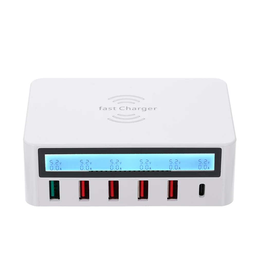Одно зарядное устройство для различных устройств. Умная зарядная станция владеет 6 портами для зарядки большего количества устройств и не вызовет каких-либо проблем со столом. Без запутанного провода раздражает вас и различная Выходная валюта позволяет заряжать различные устройства. ЖК-экран показывает четкое состояние зарядки. Также доступна Беспроводная зарядка. Это определенно идеальное зарядное устройство для вас.