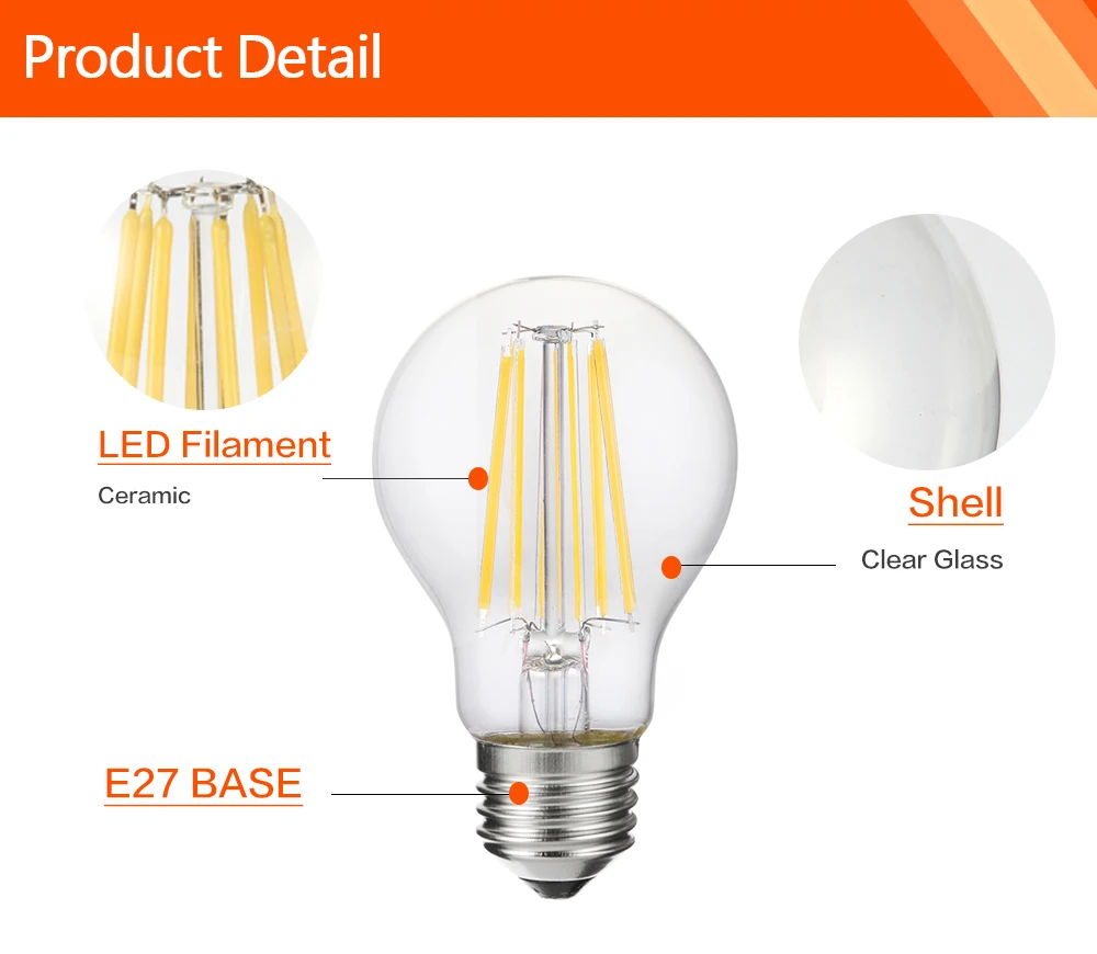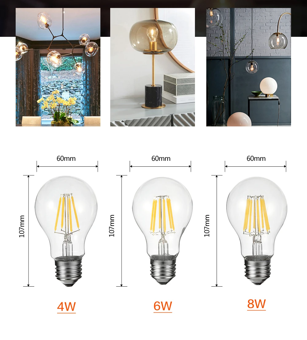 Светодиодная лампа E27 2W 4W 6W 8W A60 Led 220 в 110 В Ретро лампа накаливания Эдисона Светильник лампочка Винтаж Светодиодная лампа для гостиной Освещение в помещении светильник ing Бесплатная доставка