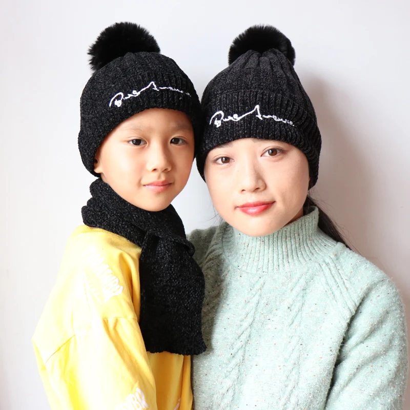 Женская вязаная шапка Skullies, однотонная Повседневная теплая шапка унисекс для мам и детей, оптовая продажа зимних шапок, 2019