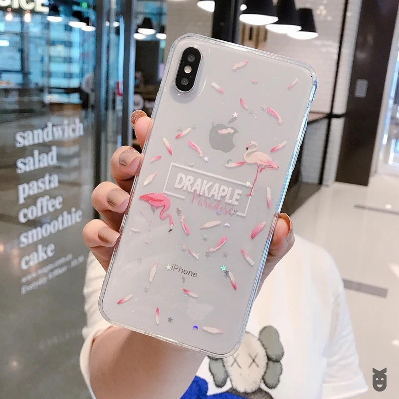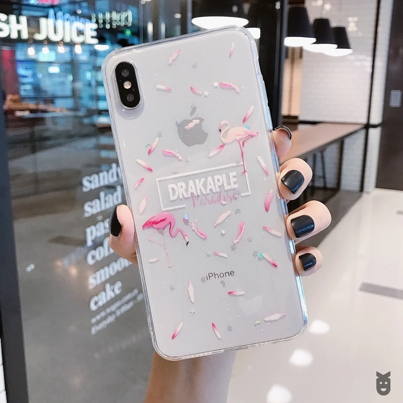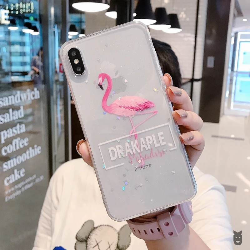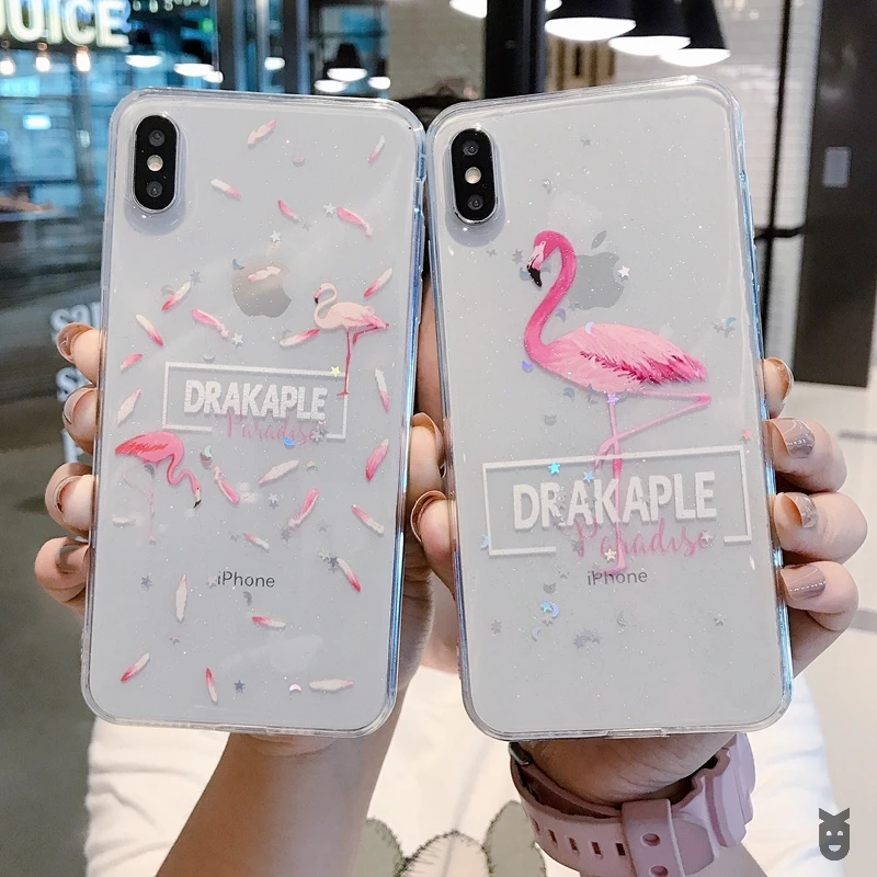 Для iPhone 6 6s 7 8 Plus 10 X XS XR Max Фламинго Блестящий Мягкий силиконовый прозрачный чехол из ТПУ